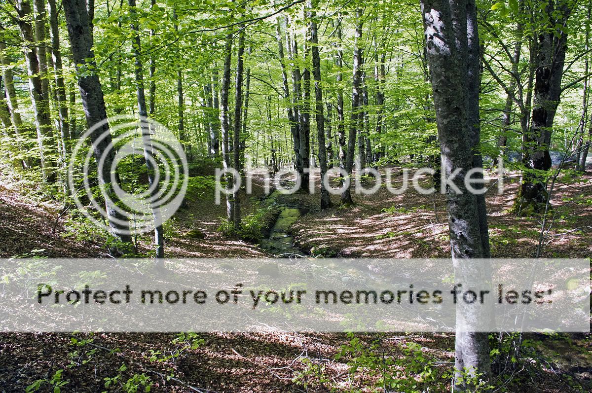 La prima parte del percorso è stata tutta soleggiata, siamo passati per prati verdi costeggiando il ruscello per poi entrare nella faggeta, dove il sole viene filtrato dalle cime degli alberi.